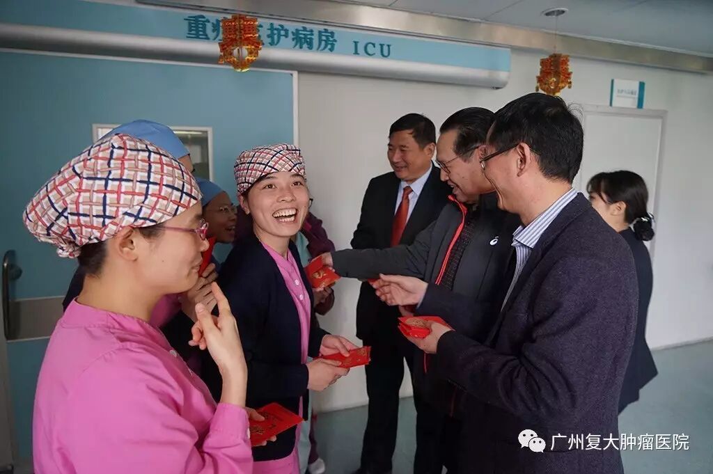 每年的年初一,广州复大肿瘤医院领导都会慰问在医院住院的患者,这已成为医院的传统。这样做,能让患者感觉到在医院也能像在家过年一样温馨,体现人性化的关怀,让患者有一种宾至如归的感觉。