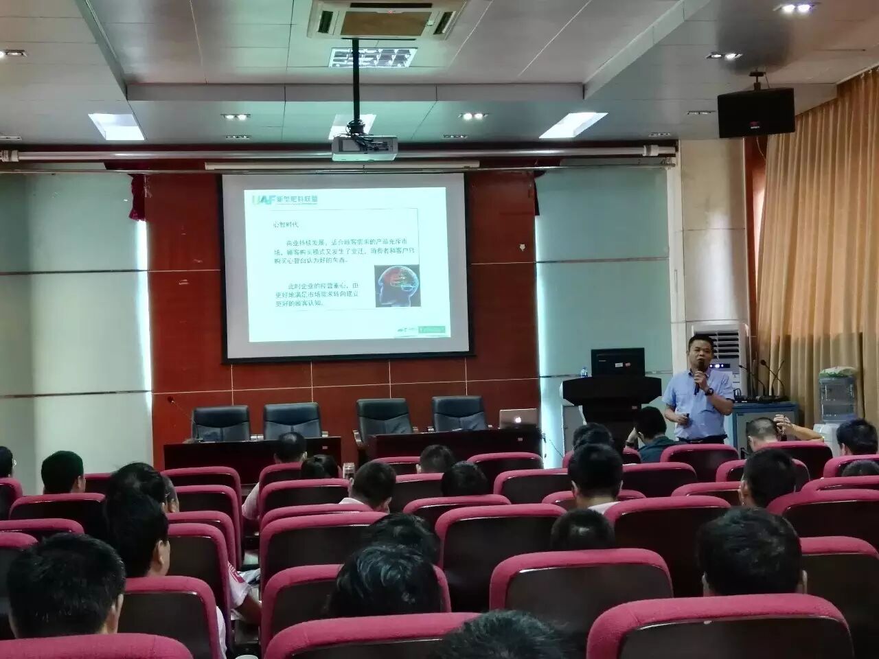 “专业成就卓越!”9月19日上午,中化化肥有限公司作物技术部仪海亮老师在华南农业大学芭田报告厅讲授《新型肥料市场推广与品牌建设》,他指出,“新型肥料市场很大,但做营销最根本还是要懂技术,要能帮客户解决实际问题。”