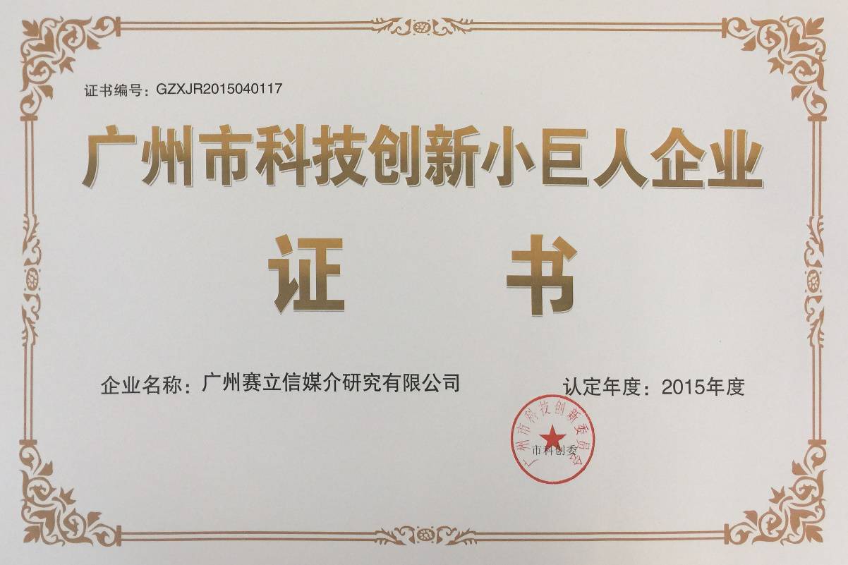 赛立信媒介研究荣获“广州市科技创新小巨人企业”认定