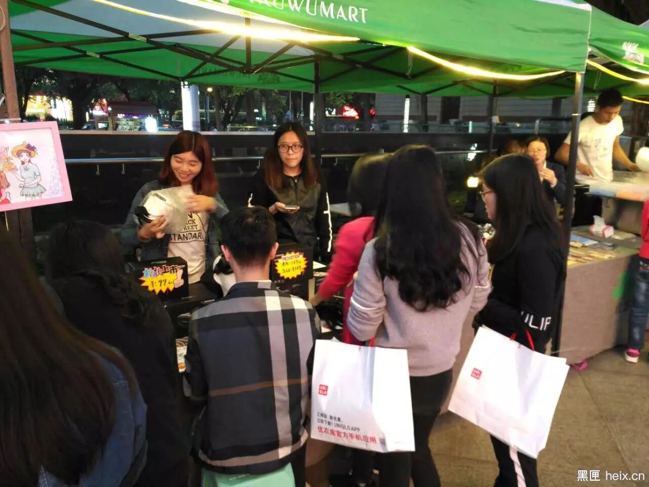 “哇!这是不是VR?”天色开始变暗,一个女生和她的几位朋友停下了脚步。
