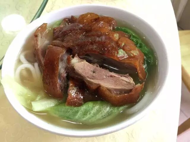 看着我面前的这碗濑粉,冰清玉洁有弹性,在汤里的姿势用玉体横陈形容再恰当不过了。我用筷子挑起碗中的濑粉送入口中,软中有韧,爽滑弹牙,仔细咀嚼时,还能品出稻米的香味,使人不由得心生明媚,心怀美好。一筷子濑粉进肚后,我夹起一块烧鹅肉,鹅皮虽然不脆了,但肉嫩可口,油而不腻,口感独特。