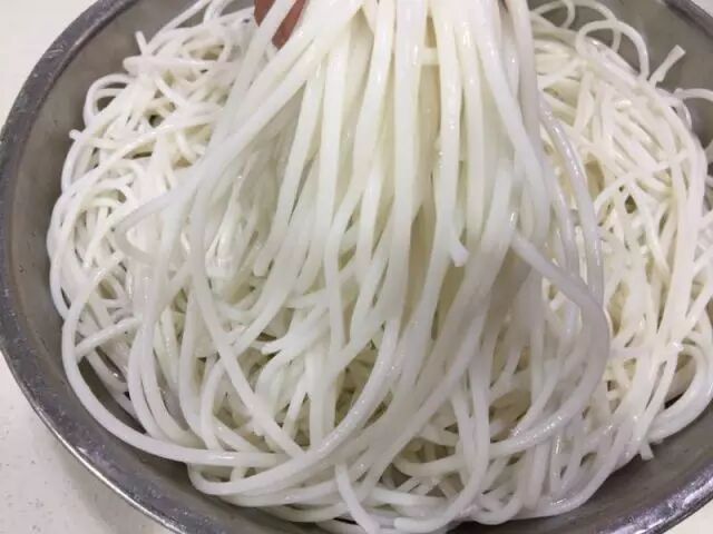 “那不一样。韶关乐昌是我老公的老家,那里做的濑粉还是采用传统做法,除了米好,水更好,用的是当地山泉水。做好的濑粉放在大缸里,泡上山泉水,每天换一次水,一个月都不变质。”