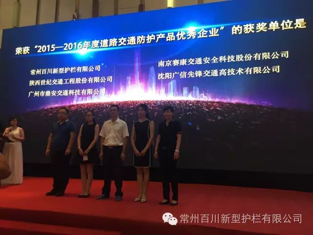 常州百川新型护栏有限公司应邀参加“第八届中国国际道路交通安全产品博览会”并荣膺“道路交通防护产品优秀企业奖”