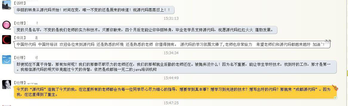 还是原来的教师团队、原来运营团队,原来的办公及学习环境,以及优化加强后的课程,更加贴心的服务。成都源代码教育,专注于JavaEE,Andorid,PHP等IT技术开发培训,未来还将开设网页平面设计 、C++、iOS、.Net等学科,继续用更优质的教学服务、更高的就业率、更给力的就业薪资回报广大新老客户。