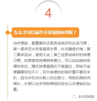 偶尔使用开塞露是治疗便秘安全有效的方法,但是在临床上,开塞露并不是治疗便秘的首选方法。开塞露主要用于大便嵌顿和需要迅速通便者,比如长期卧床的病人和做术前准备的病人,对于儿童便秘,如果需要使用开塞露,尽量使用含甘油成分的类型,防止山梨醇和硫酸镁对儿童肠道造成过度刺激,并且要注意开塞露的正确使用方法,安抚好患儿,防止其乱动而造成直肠粘膜损伤。孕产妇也是便秘的高发人群,对于便秘严重者,可以暂时使用开塞露缓解症状,但是一定要注意防止形成依赖,加强其他治疗方法的应用。外科手术后便秘亦为常见的术后并发症,大多是因为术后肠道蠕动减弱,尽早下床活动是首选的治疗方法,对于一些便秘严重,大便干结的患者,可以暂时使用开塞露缓解。
