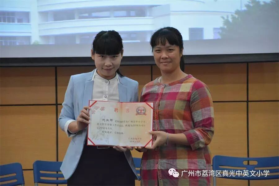周少丽副校长为刘淑晖老师颁发广州市名班主任甘育敏工作室成员聘书