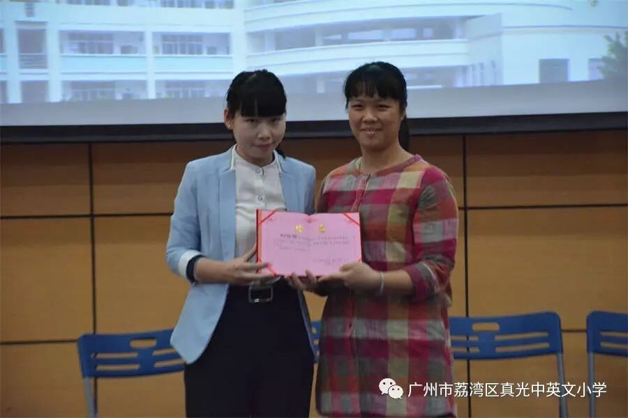 周少丽副校长为刘淑晖老师颁发真光中英文小学校级班主任工作坊主持人聘书
