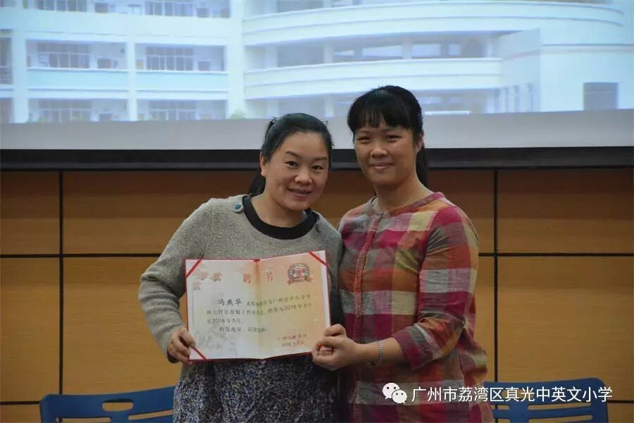 周少丽副校长为冯燕华老师颁发广州市名班主任甘育敏工作室学员聘书