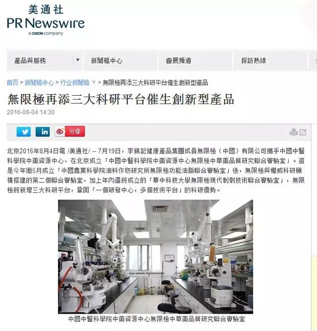 进入2016年,无限极在研发方面动作频频。4月,无限极研发中心新办公大楼在中国广州启用。新大楼整体面积近万平方米,投入近五千万人民币,内设感官评价室、功能性食品实验室、家居产品研发室、生活净水研发室、彩妆粉类研发室、睡眠技术研发室等多功能实验室。新升级的研发中心将致力于进行全球产品开发,并在全球范围内和科研机构、专家进行合作,展开健康领域的前沿科学与技术研究。