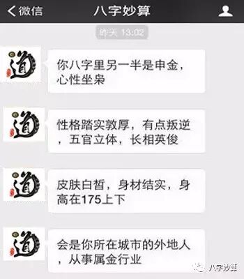 那年关注了很多星座测算的文章,关注和对比很久之后,选择了“八字妙算”测算下婚姻。真是一算吓一跳,当时的算命记录,我一直保存着,算命师傅也成为了我生活的导航灯,有疑问还可以继续咨询。今天就把算命的记录,截取些关键点,贴出来给大家一起分享。