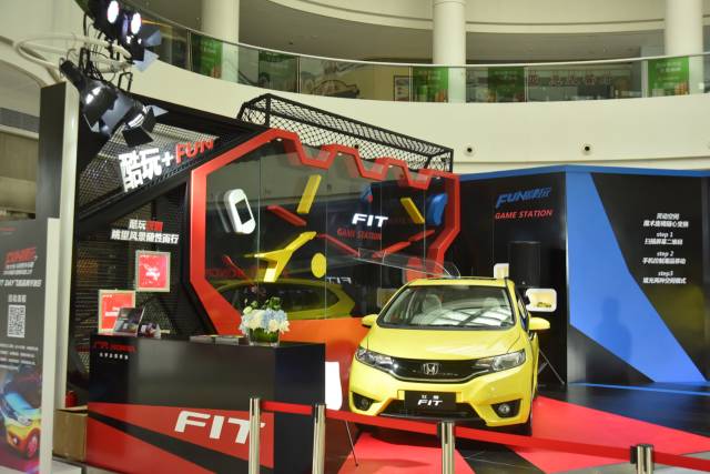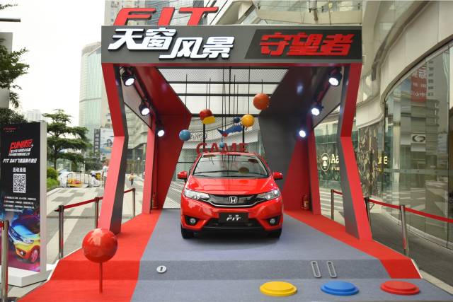◢活动中,飞度(FIT)迅速变身为消费者的潮流玩伴,结合其空间、动力、天窗、倒车雷达等同级领先优势,打造超大游戏机造型展台,将年轻活力的形象淋漓展现。