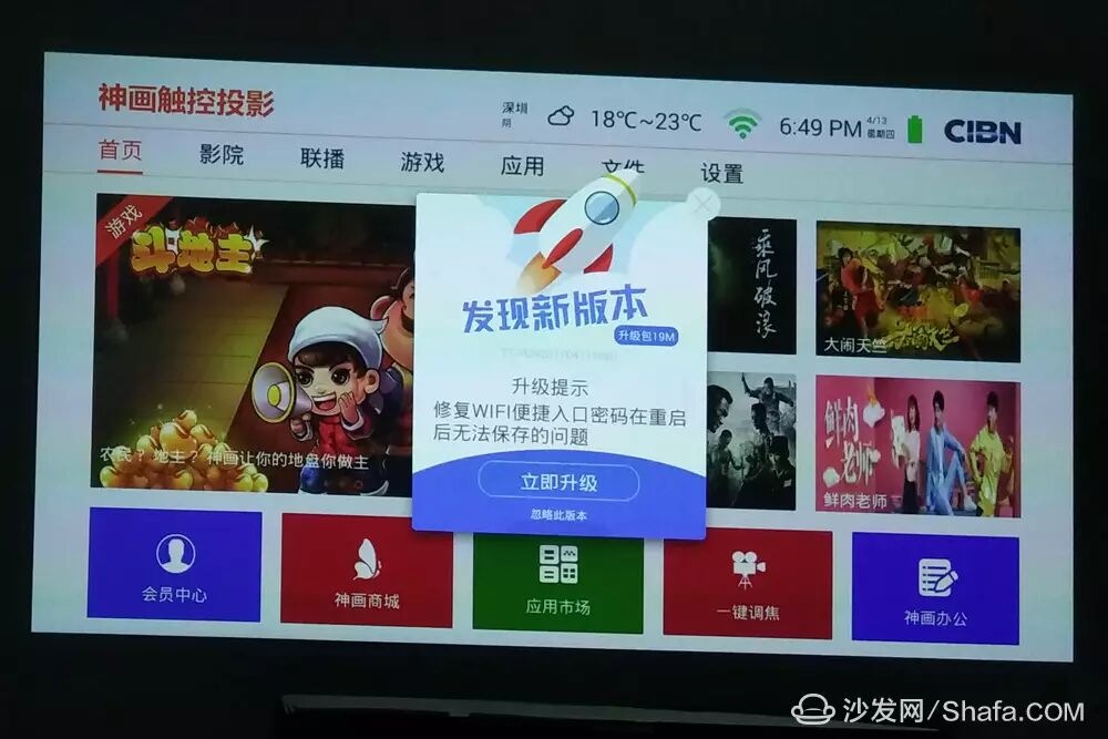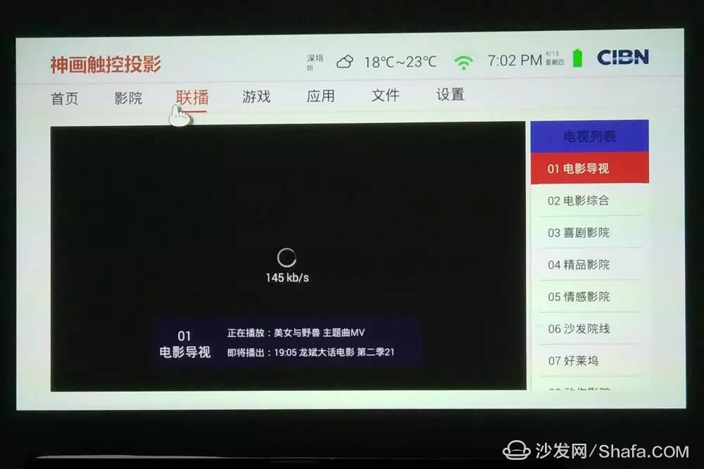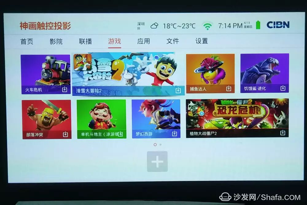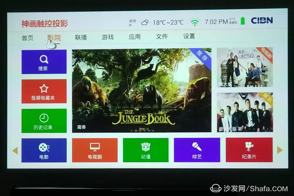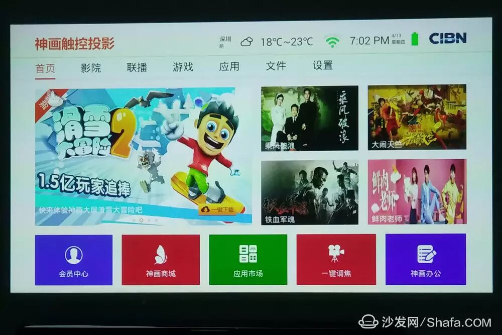 各个类目的内容排序也不尽相同!细心的网友相信已经观察到,顶端状态栏左侧一直显示的“神画触控投影”,用了神画产品,有对应的品牌展示是理所当然,右边的CIBN标识,则显示了神画不俗的实力,CIBN优质资源平台保驾护航,相信内置的影视资源少不了。