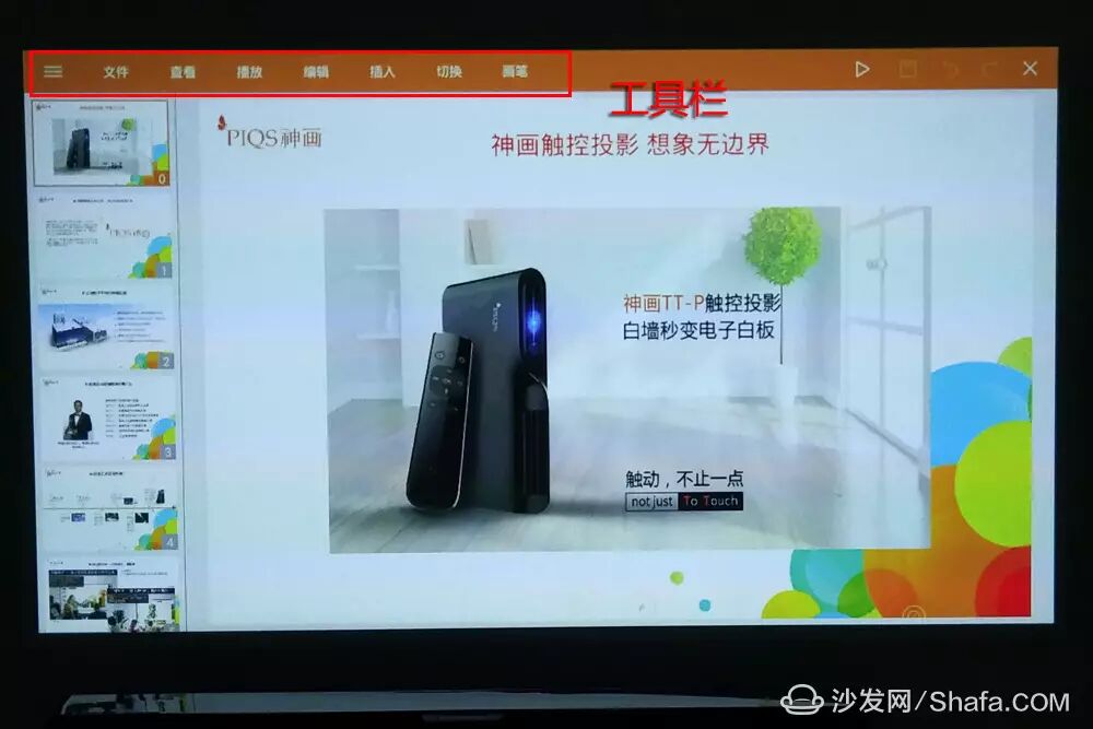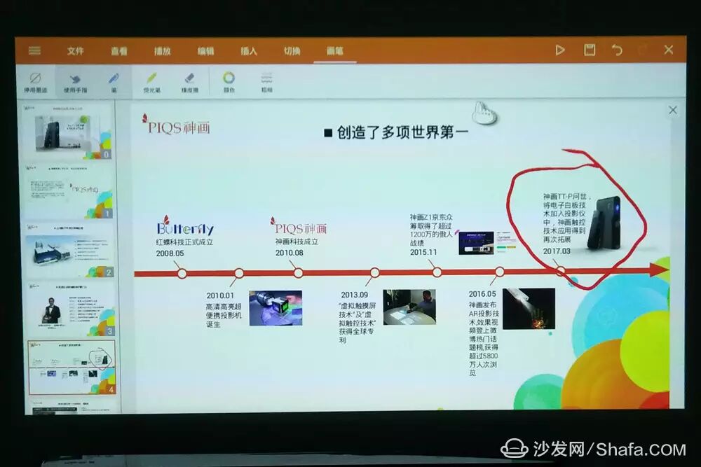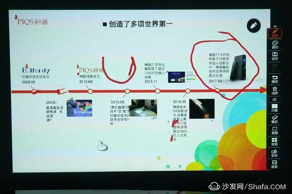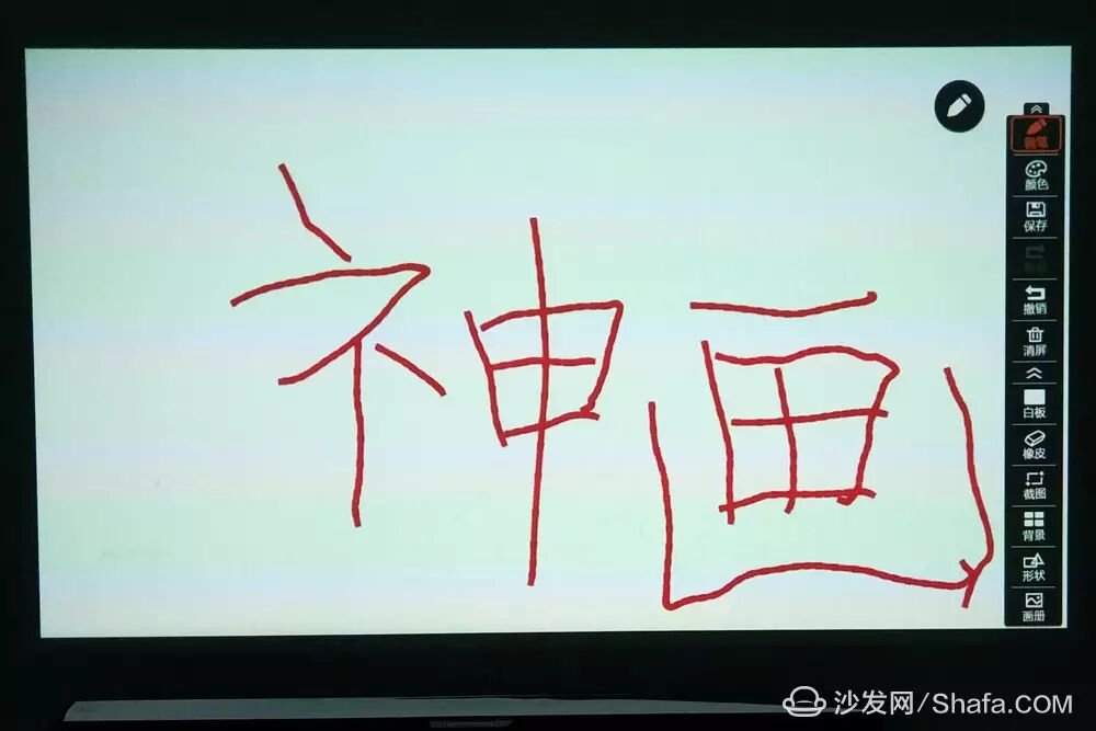 进入到具体体验环节,首先介绍的必然是神画TT-P商务版独创的秒变电子白板的功能,结合神笔隔空触控的功能集合键,用户可以实现重点的圈点、批注、分析、记录等,让传统的显示输出进入全面的人机交互时代。
