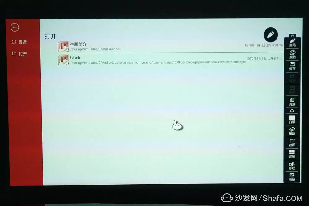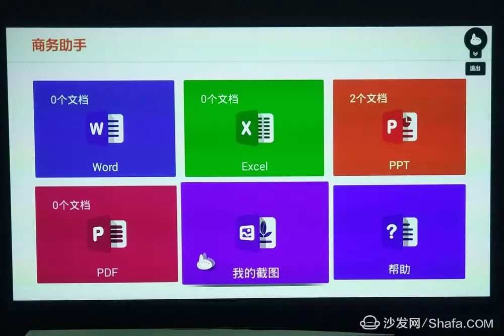 通过点击首页右下角的“神画办公”图示,即能进入到商务助手的主界面,通过截图可以看到,神画TT-P支持读取Office办公软件(Word文本、Excel电子表格、PPT)文档,同时还支持PDF阅读及截图展示,在使用神画TT-P时,用户可以打开神画投影中内置的办**件,同时也能够通过扩展接口使用U盘、移动硬盘等外置存储中的办**件。