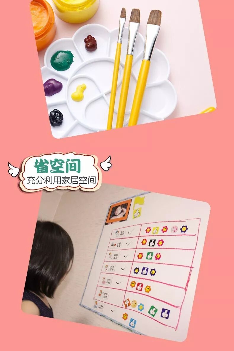 小面积的可以用来贴习惯计划表、奖励磁铁;作为家庭留言板或记事本,记录家庭日程、计划和清单!大面积的可以用来给孩子涂涂画画、练习书写、认字思维英语启蒙教学……