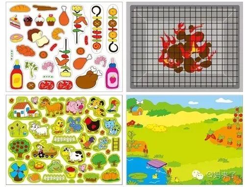 Q妈建议:先玩开放式贴纸;熟练后尝试填空式贴纸;熟练后再回归开放式贴纸。(认知——>想象力)