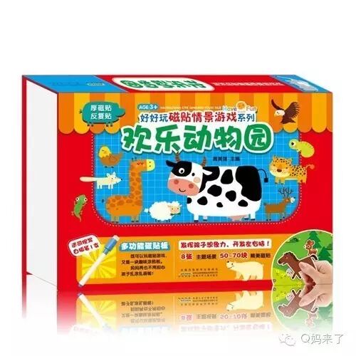 8张主题场景,50-70块磁力贴;磁贴板还可作为涂鸦板,配有一直可擦写的白板笔。