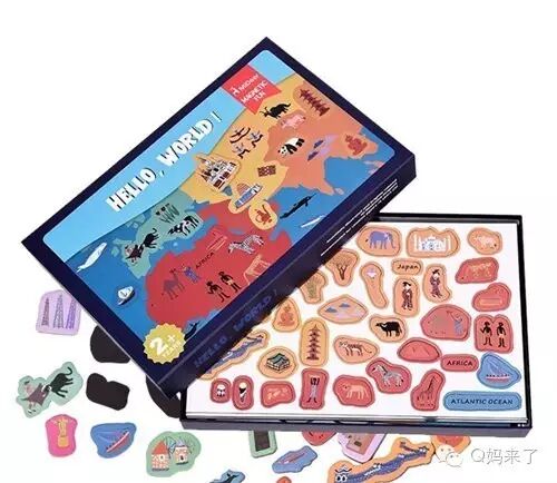 大开页世界地图,131片磁力贴,融合艺术与世界地理。幼儿可以发挥想象随意贴;学龄前孩子可以结合认知将代表物品、标志性建筑与国家一一对应。