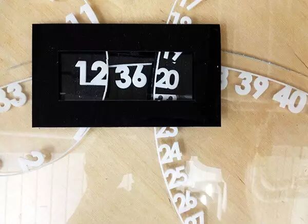 句号钟表背面有一个用来调整时间的按钮和一个用来悬挂钟表的孔,如果你不想把钟表挂在墙上,这个孔同时也可以帮助识别表盘的顶部。此外,句号钟表分木制版和磨砂塑料两个版本,后者含有夜光材料,可以在晚上发光。