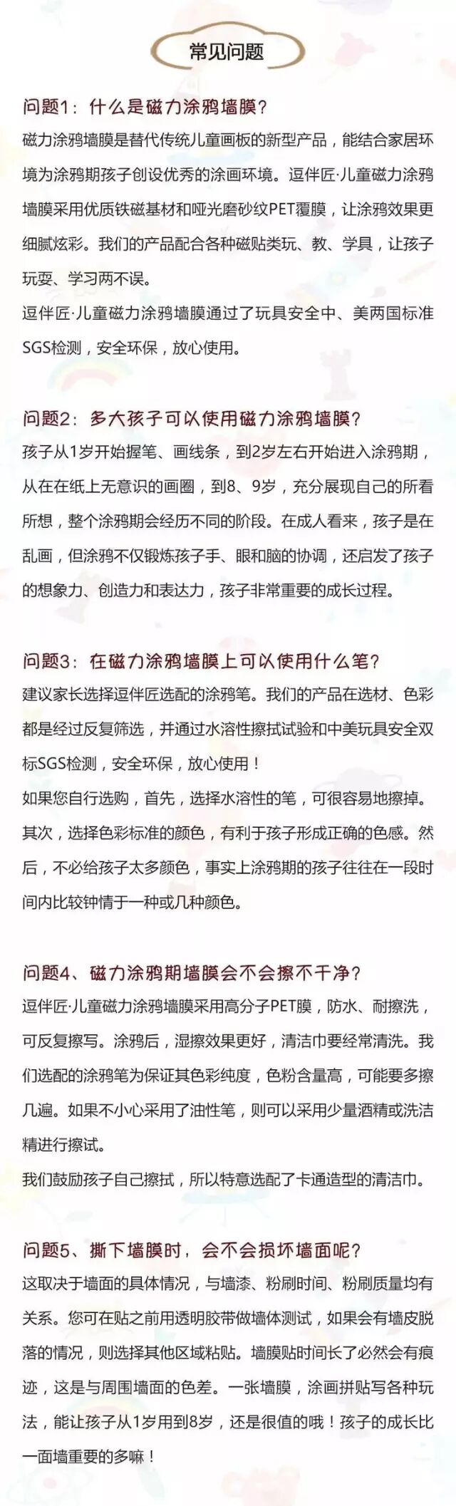 第三代全新升级的套装,在墙膜的厚度、磨砂纹的工艺、涂鸦笔的配方和数量、磁铁配件、装饰条、包装等方面都进行了升级!