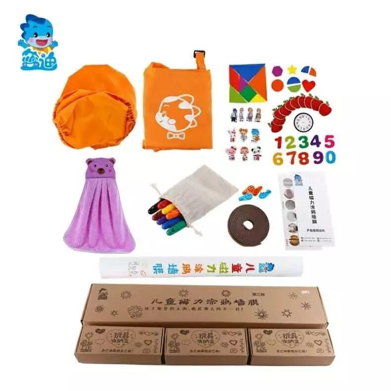 墙膜赠品:围裙、套袖、磁力贴、8色水彩、擦巾、防护条、无痕钉