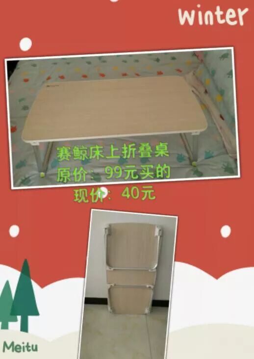 赛鲸折叠桌(床上专用)吃饭、办公均可,原价99元买的,现价40转让,9.9成新。