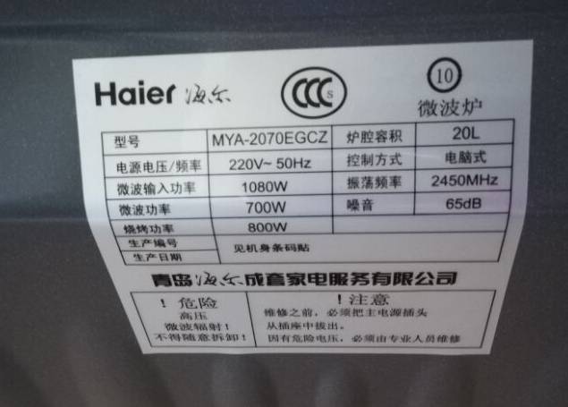 闲置海尔全新微波光波炉,容积20L,型号MYA_2070EGCZ。网价650_750元。500元出。电话15932717749
