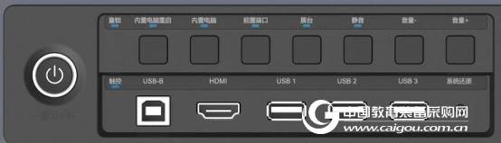 开关以及各类接口都被放置在底部,其独特的一键开机功能,能够一键掌控投影机、中控、OPS,达到真正意义上的一键启动教学,一键系统还原的设计,保证了公共使用环境中设备的稳定。各类接口促成了鸿合HV-MI97W的三个应用场景,让教学变的更加简单 、快捷。