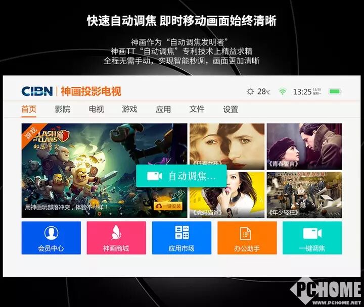在了解了神画TT投影机的新技术后,让我们再来看看这款投影机的基本功:画质吧。它具备400ANSI流明配置,相当于传统投影2000流明,亮度相较以前的微投有了显著提升。在家庭客厅环境下使用,搭配高码率影像片源,即使不用昂贵的抗光投影幕布,白天观看依然清晰自然,间接对观看者娇贵的眼睛起到了保护作用。此外,投影机还配备了以5.1声道系统为蓝本的独立音响处理技术,增强了不同影视环境下的语音效果,聚合优酷和CIBN双视频平台,轻松在小居室内打造家庭影院般的效果!