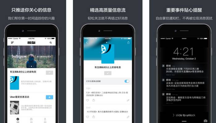 资讯筛选类APP在现在看来已经不足为奇,但还是不断有新产品通过细节的创新为用户带来新惊喜。如果已经厌倦了用娱乐、科技、生活、健康这些模糊的分类来设置自己的偏好,那么不妨试试在「即刻」上直接勾选自己感兴趣的话题来选择接收的信息。你可以先通过分类模块进入一个个大类领域,再在其中选择那些感兴趣的话题。即刻的话题设置的非常细致,无论你是技术帝还是韩流粉,都能在这里准确无误地找到自己的组织。豆瓣高分电影和知乎每日精选帮你提高浏览效率,如果有想要的话题,还可以发消息调戏运营为你添加。