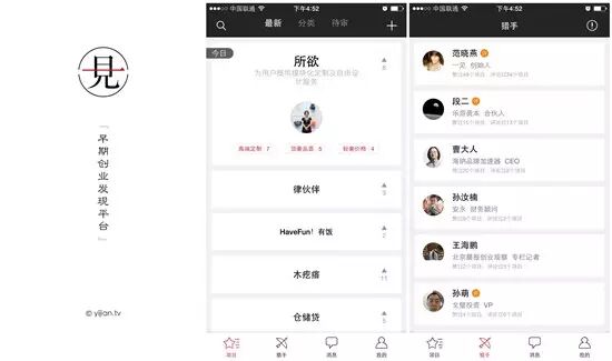 对于创投圈的筒子们来说,最近上线的「一见App」会很符合你们的口味。每天更新三款早起创业项目,除了标准的项目简介以外,还配以几分钟的创始人介绍视频,可以帮助我们更直观地了解创业者们和项目内容。除项目本身之外,一见还增加了“猎手”板块,邀请了一些投资人入驻,方便创业者与投资人之间的沟通。