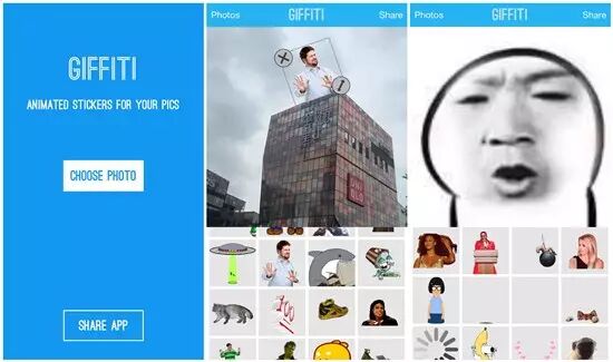 每天刷微博动图笑的内牛满面的你,想不想自己做出这样的GIF动图呢?Giffiti是一款为你的静止图片加点料的应用,让你通过简单的操作让自己拍摄的普通图片搞笑爆表。从相册选择一张图片,或者先研究好APP中的动态素材之后专门拍一张使用。在动态素材添加界面滑动选择你喜欢的搞笑元素,调整好大小和角度放到适合的位置。Giffiti中的动态素材非常丰富,一步操作不具有任何的技术门槛。段子素材已经准备就绪,逗比们快到碗里来!