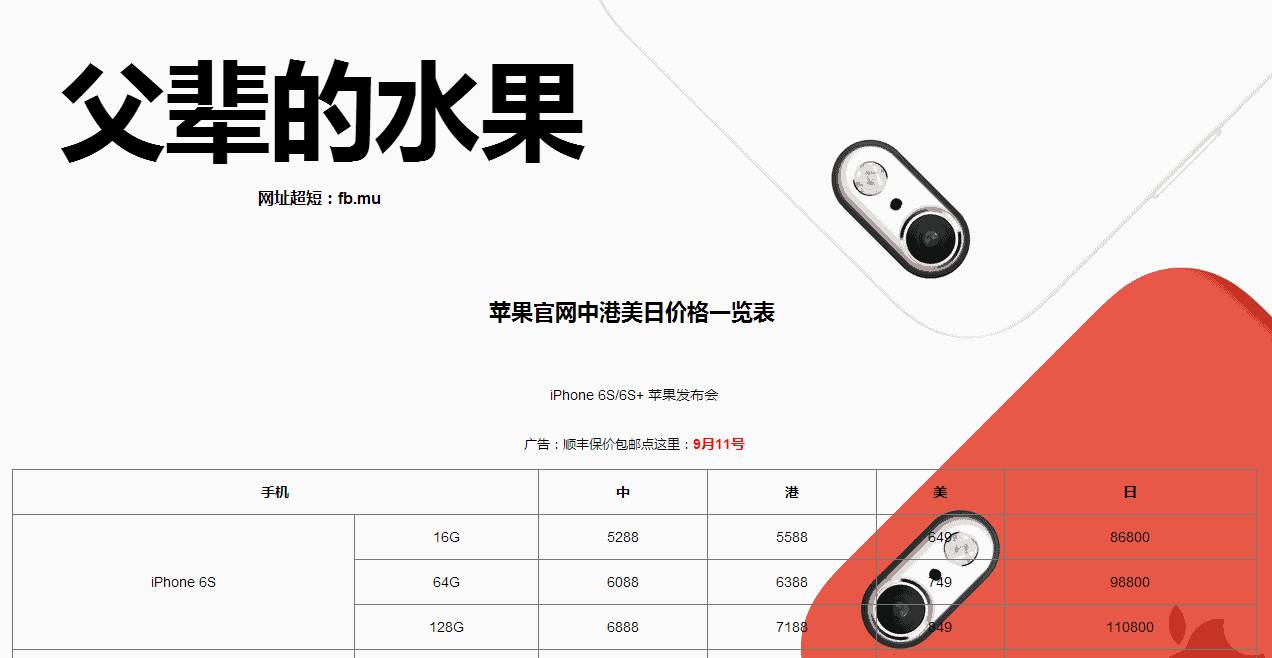 每一次苹果发布大会落幕,我大天朝都会涌现出一大批准备就绪的子民等待掏肾。为了给术后康复留点钱,很多人都会火力全开,港美日各种搜罗比价,能省一块绝不多花一分。父辈的水果是一个为有需求的用户提供内、港、美、日四处,苹果系列全部型号产品价格的网站,不仅型号信息齐全,价格更新速度也非常快。不管当下有没有购买需求,果粉们都可以mark下这个网站,以备不时之需