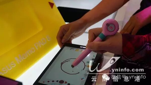 可感应大自然的颜色,如苹果的红、头发的黑、天空的蓝……任何带有颜色的实物,即可轻轻一点便可感应,并同时储存,呈现颜色多达6.5万种,现已开发多款软件(App)提供小孩上色、绘图,另有结合音乐的软件,还可边弹琴边上色。其创意源自于老板爱护2位小女儿,希望她们可以一边玩乐一边兼顾开发左右脑发展平衡。不用时触控笔还可当作磁铁吸附在冰箱上,白板上,吸色圆柄部份可用力弯曲,笔头使用软包布设计,对孩子来说更是安全性十足,充电3小时可续电6个月