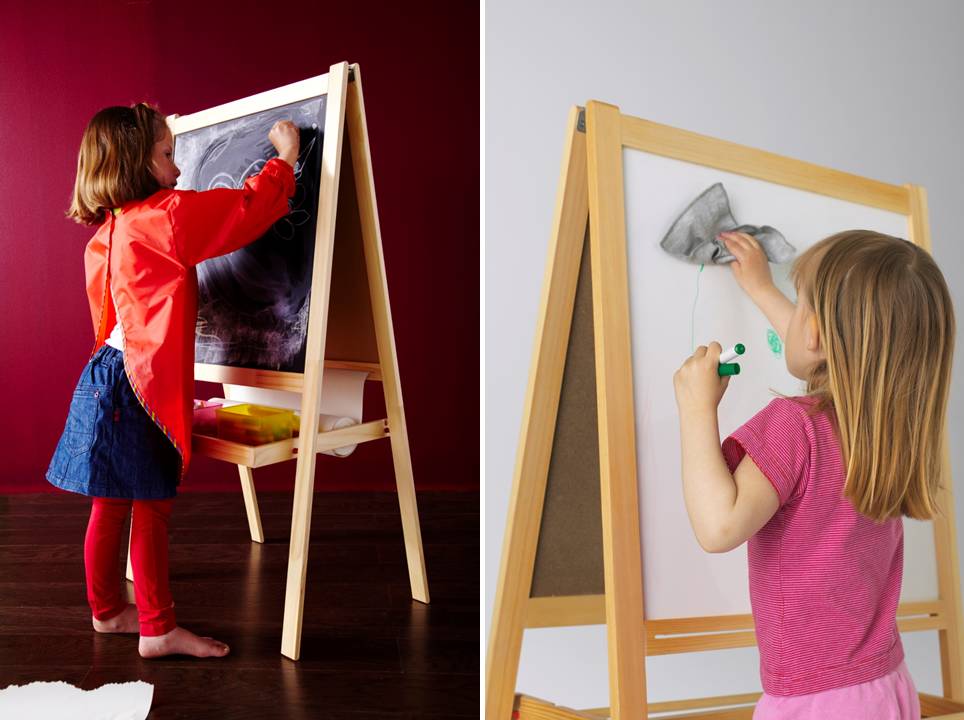书写板一面为白板,一面为黑板。可以用它来做各种各样的事情。画架可折叠,节省存放空间。