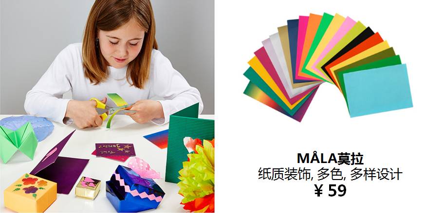 运用 MÅLA 莫拉 纸质装饰 发挥创造力拼贴或是创造出不同的形状总是喜闻乐见。