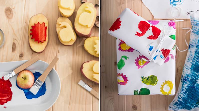 质地硬实的土豆或苹果用饼干模具印刻出想要的形状,立刻化身百变印章。