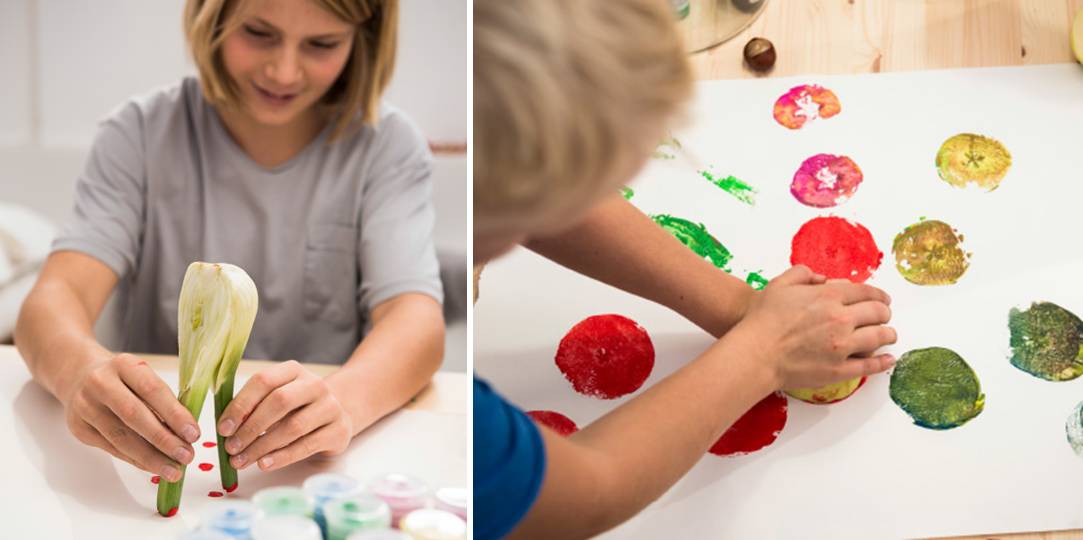 也许你从没想过本身带有自然纹络的果蔬们是作画的好工具,将不同纹路的果蔬沾上水彩颜料,你将会有新发现!
