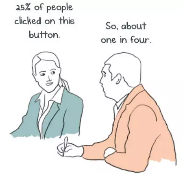 当有人说"约有25%的人点击了这个按钮"时,你可以迅速地接上"所以每四个中就有一个人点了按钮"并写下笔记,会让身旁的人感受到你的迅速反应和数学理解能力。