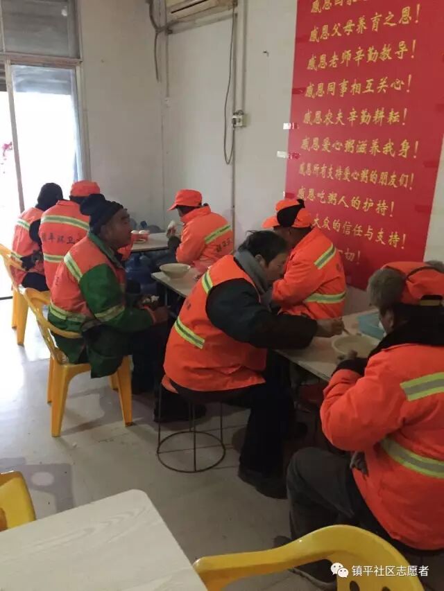 今天早上再次去“爱心粥铺”,志愿者们说,昨天来吃饭的有20人,今天早上8点的时候,已经做了三次饭了,来了40多位环卫工人,是不是一传十传百,小编就不知道了。小编顺便问了一位环卫工人:“您吃饱了吗?",环卫工人说”可吃饱了,还吃了一头汗“。看来,环卫工人是很满意的。回来在社区志愿者群里说一下情况,立马又有十来位志愿者发来捐款红包,有的还一再嘱托不让在群里公布,只是一点心意,今天下午还在收到志愿者送来吃饭的条羹,真的很让人感动!