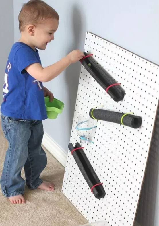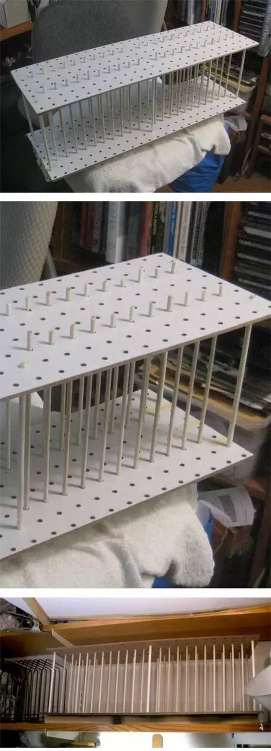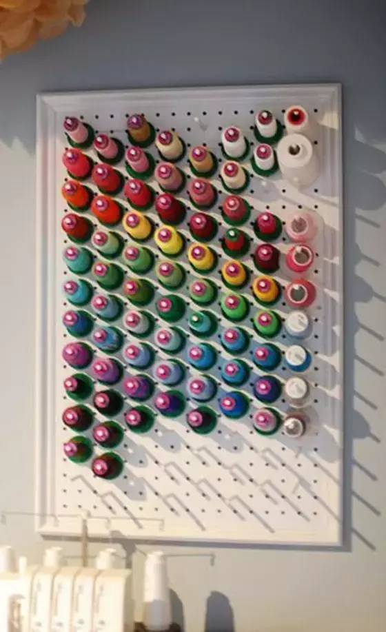 各种颜色的线有规律地挂在洞洞板上,再也不会拿错颜色了。