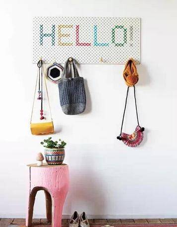 “绣”个彩色“Hello”,放在进门处,一回到家的好心情扑面而来,还能挂包包、帽子,实用与浪漫兼得。
