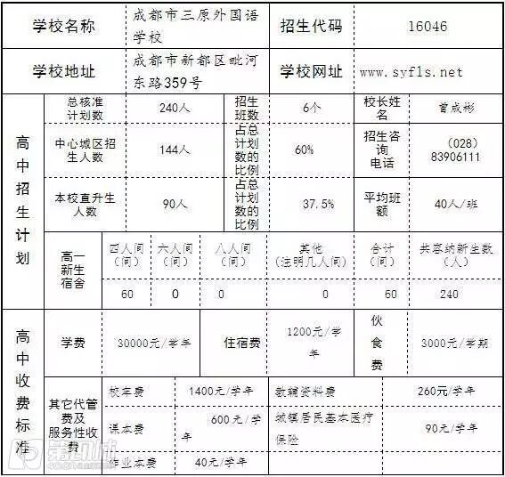 学校简介:三原外国语学校是2000年建立的,地址在新都。这个学校因为在郊区,面积大、环境不错、绿化较好、住宿条件优越。教学质量方面也挺高,特别是初中的外语教育和高中的实验班,是这学校办学的优势。