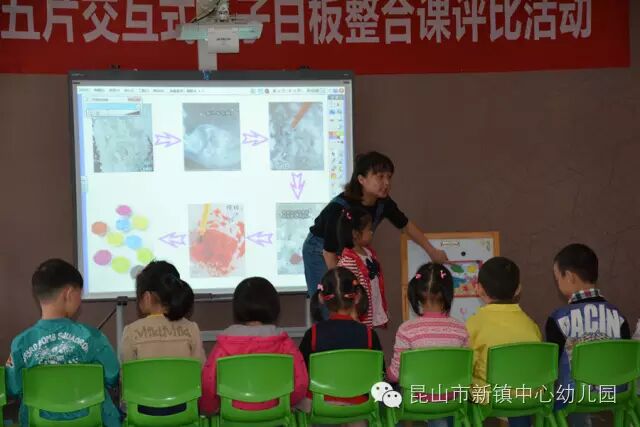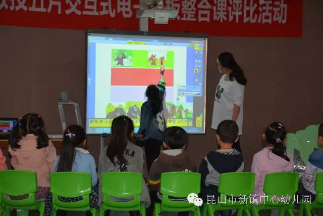 10月25日、26日两天,昆山市幼儿园教技五片交互式电子白板整合课评比活动在新镇中心幼儿园举行。本次活动邀请三名市骨干教师担任评委,来自幼教五片的20名青年教师在艺术领域贯彻新理念,灵活将白板技术运用于教学活动,提高了教学活动效率,让孩子们获得了多方面的发展。