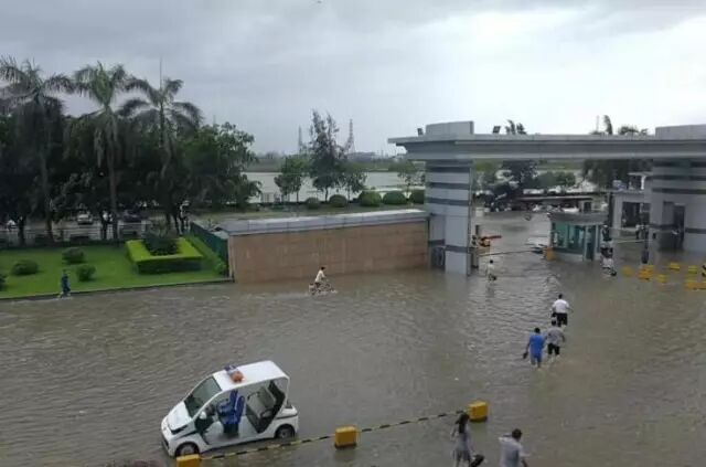 ▲东莞某纸厂,厂门口受到水浸,客户和员工须趟水进厂