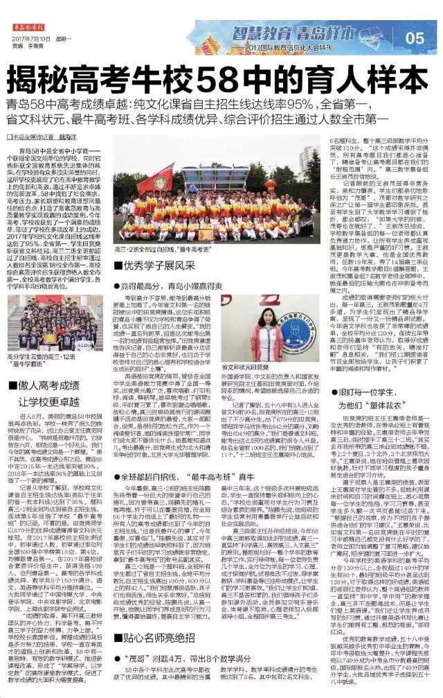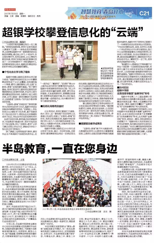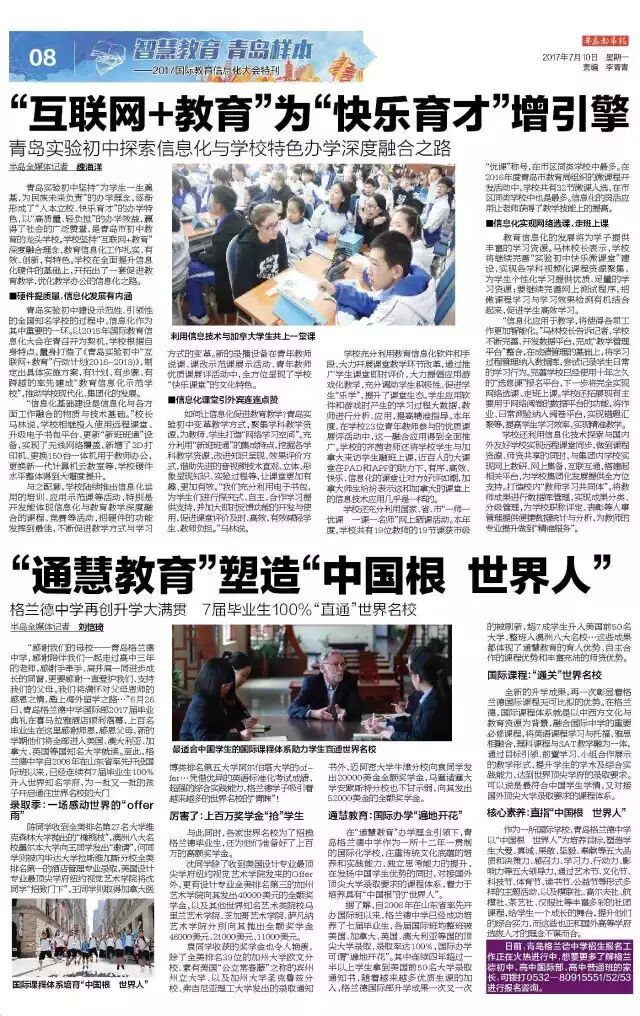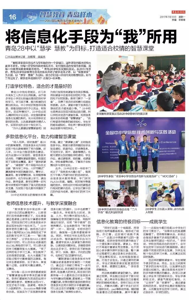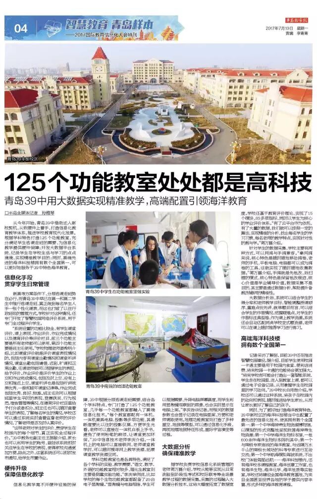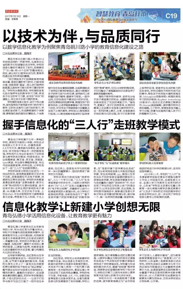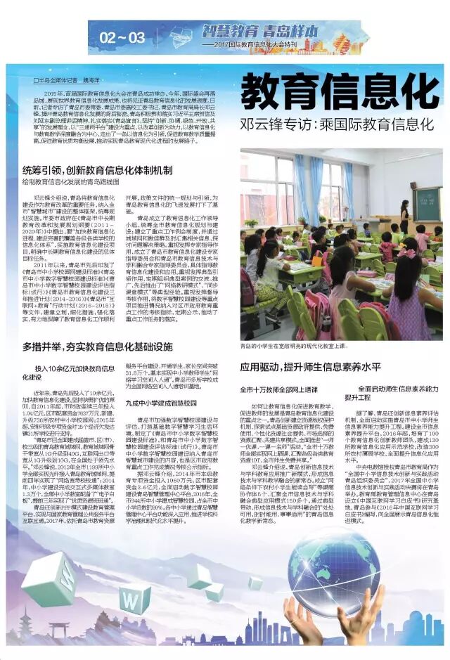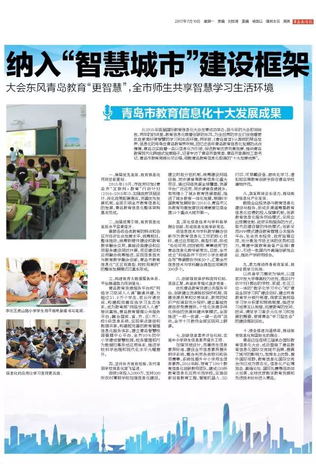 四、连续3年投入3000万元,支持300所农村薄弱学校加强信息化建设。根据《中国教育发展报告(2016)》,青岛市义务教育均衡发展总体满意度位居全国19个重点大城市第一。