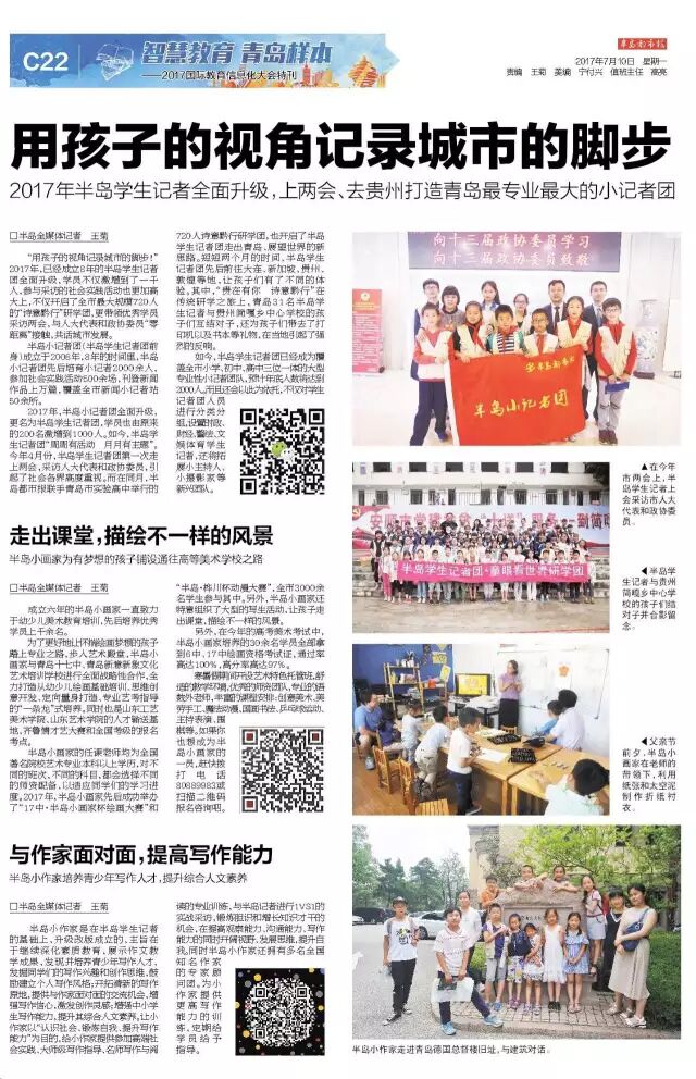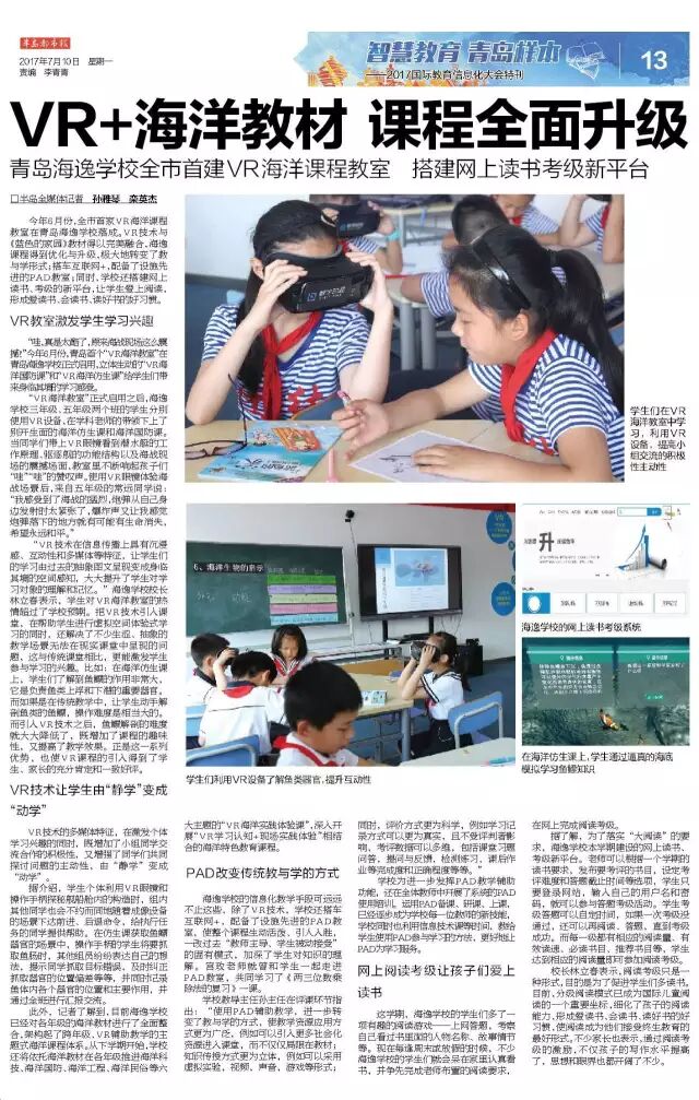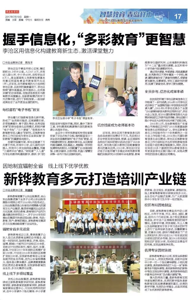 三、青岛教育资源服务平台和“网络学习空间人人通”融通共建,为超过31.8万个学生、家长开通空间,构建起完善在线学习生态体系,。建立青岛智慧校园管理中心平台,全市90%的中小学建成智慧校园。