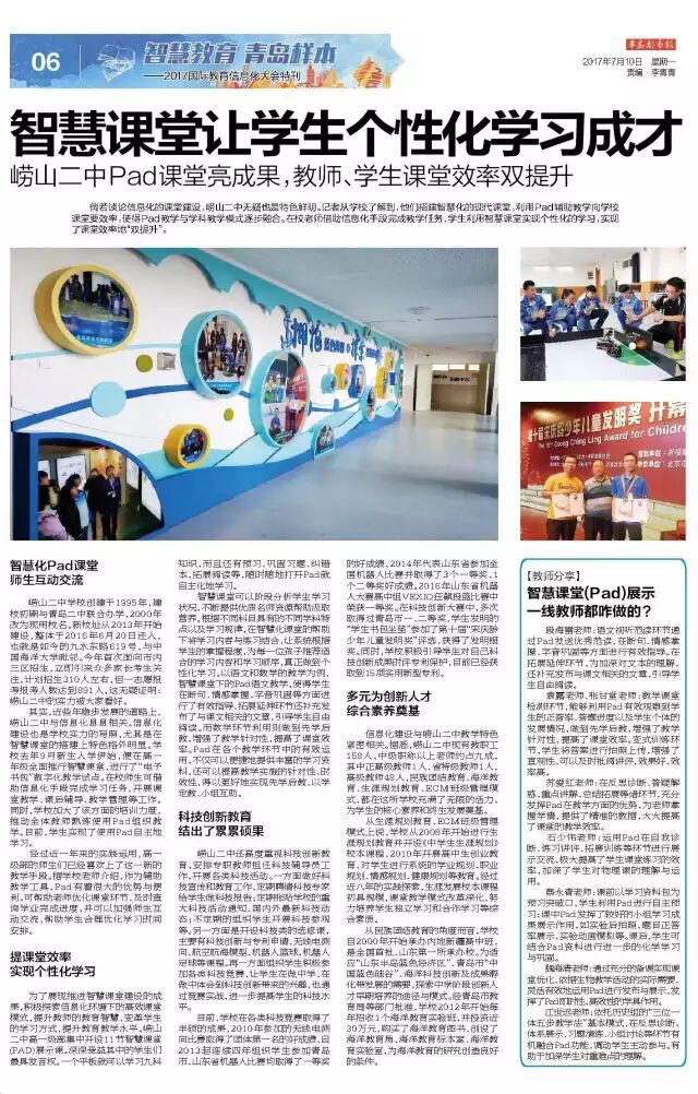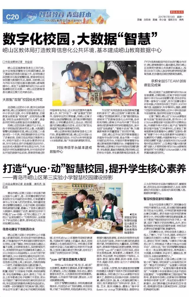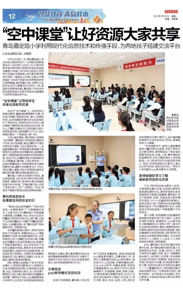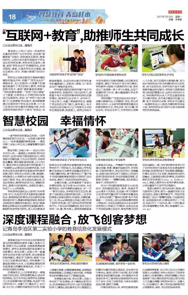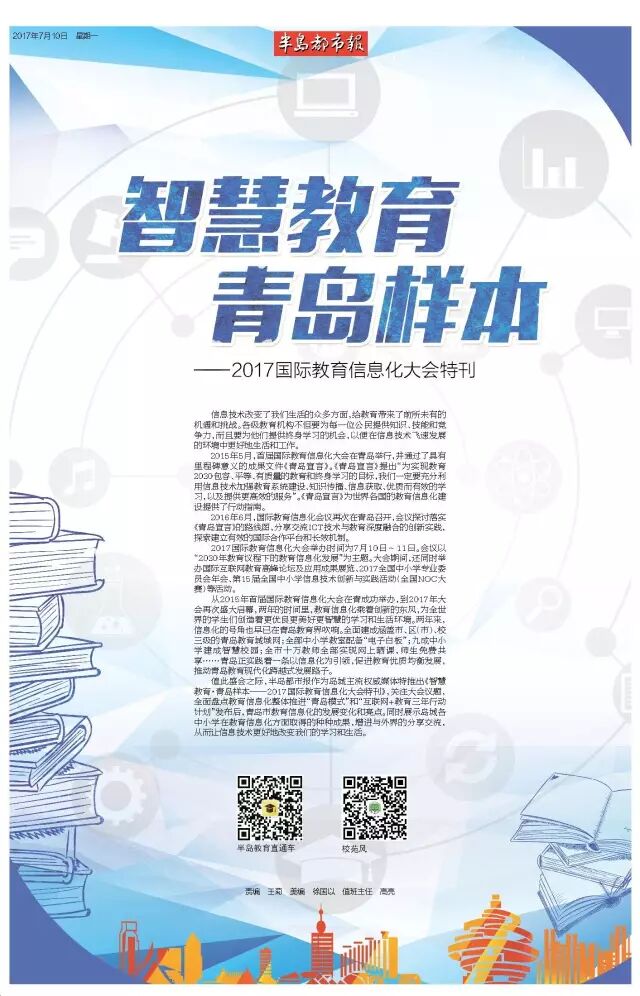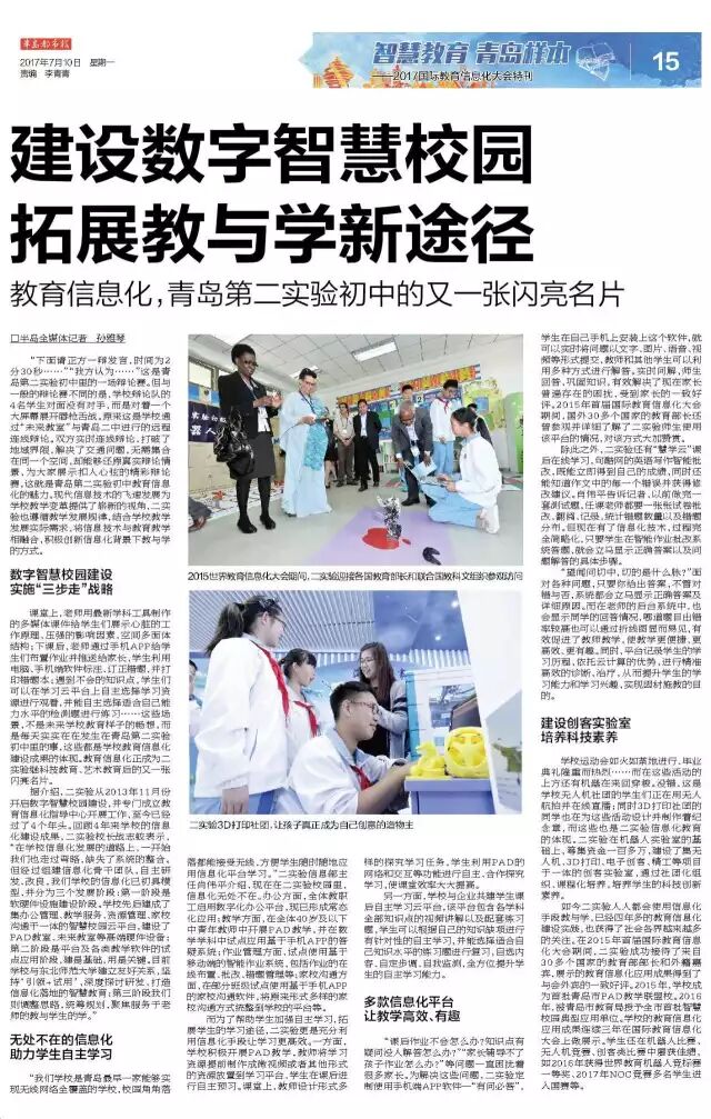 二、青岛市教育信息化“区区有典型、校校有案例”的整体发展模式已基本形成。