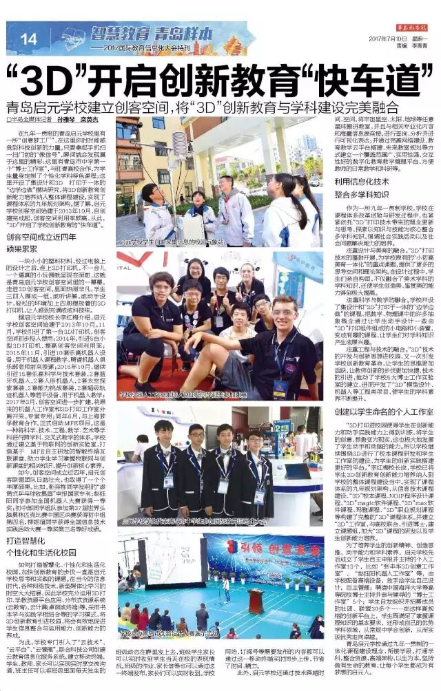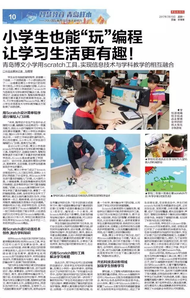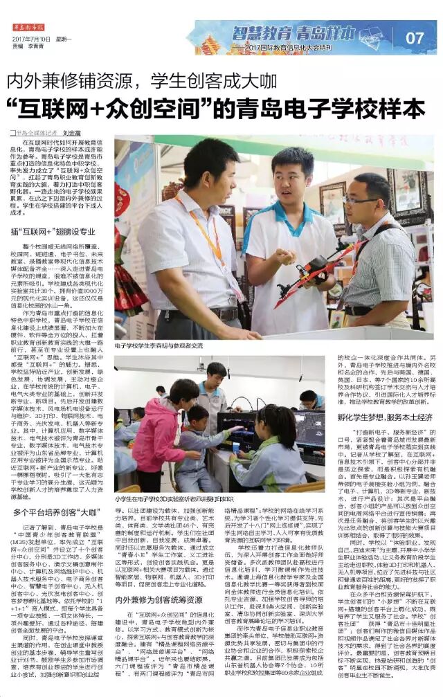 七、2016年起,培育了100个教育信息化创新教师团队,建成130所教育信息化应用示范学校。实施创新创客教育工程,智能机器人、3D打印、可穿戴设备、游戏化学习、虚拟现实等教育创新手段在青岛学校遍地开花。