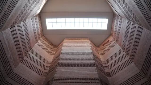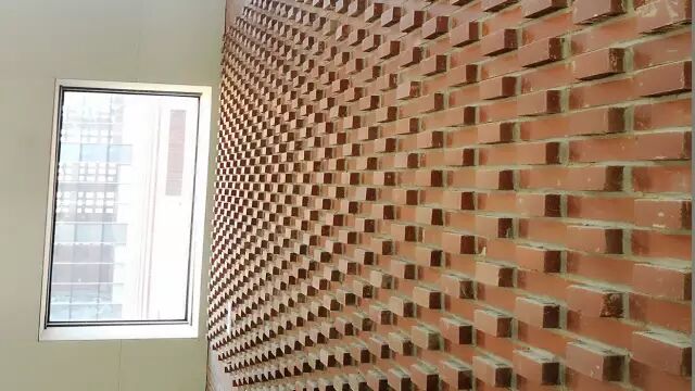 教学馆部分墙体采用了花式陶土砖砌筑法,此工艺复杂,美观大方,立体感强。